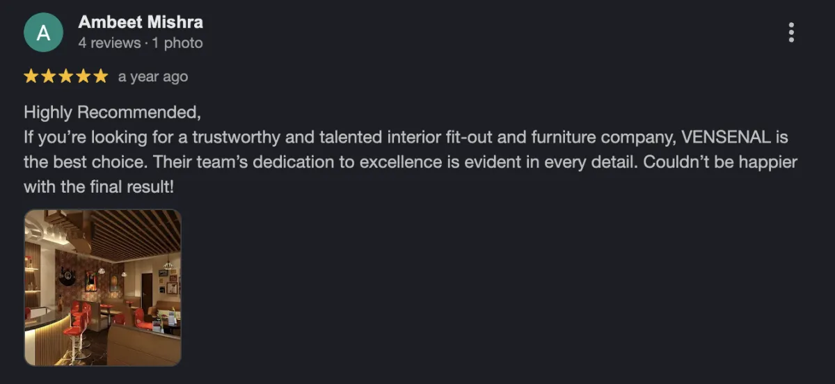 "Vensenal left me and my family in Wow! They renovated our house in a very short period of time. They are a 10/10 for me".
